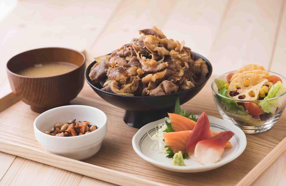 全新的十和田燒牛肉洋蔥丼加配刺身定食,分量足。