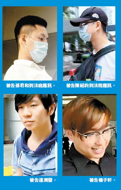 5名男被告依次為運輸工人楊子軒(18歲)、運輸工人羅浩彥(20歲)、無業漢陳紹鈞(47歲)、旅行社職員孫君和(27歲)及工人連潤發(25歲),被指控於案發時聯同他人參與暴動。庭上透露,楊、羅及孫將爭議案發時是否在場,及即使在場其行為是否屬參與暴動,而陳及連則爭議他們是否有參與暴動。