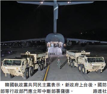 【香港商報网訊】新總統上臺后,韓國國內要求重審薩德政策的呼聲日漸高漲。韓國執政黨共同民主黨昨日表示,應立即中斷部署薩德,并將推動國會就薩德部署問題舉行聽證會。此前,總統文在寅在競選期間曾多次表示,部署薩德應履行國會審批程序。韓國中央日報網昨日亦發表社論,呼吁新政府盡快向中國派遣特使解決薩德問題。