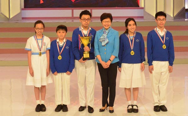 佟曉玲稱,今年7月1日迎來香港回歸20周年慶典,「一國兩制」取得的巨大成功,將展示世人;以林鄭月娥為首的新一屆特區政府,將同心創前路,掌握新機遇,展開未來5年的光輝歷程。經一番激烈比賽,最終由中華傳道會安柱中學奪得金獎;觀塘瑪利諾書院、英華書院贏得銀獎;浸信會呂明材中學、保良局董玉娣中學則獲銅獎;除了精英賽外,昨日也有頒發先鋒賽等賽事的獎項。