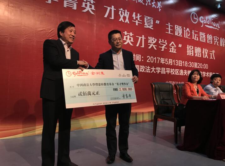 【香港商報网訊】記者敖雷報道:5月13日,在中國政法大學舉行的「桃李菁英才效華夏」主題論壇暨曾憲梓教育基金「英才獎學金」捐贈儀式上,金利來集團副主席兼行政總裁曾智明宣布:自2017年始,曾憲梓教育基金將再次捐贈200萬元人民幣延續「英才獎學金」10年,一如既往地獎勵中國政法大學成績優异、品德優良、素質全面的在校本科生,為培養法大的學生提供助力,搭建社會菁英全面深入聯繫與交流的平台,實現「憲梓英才」智庫的戰略布局。