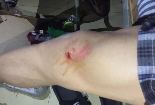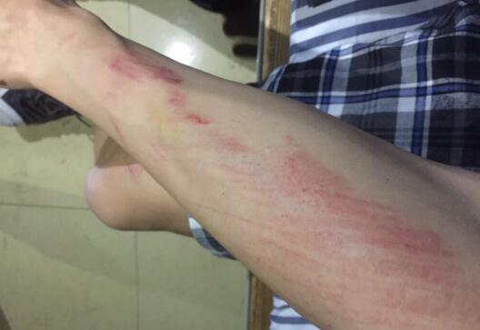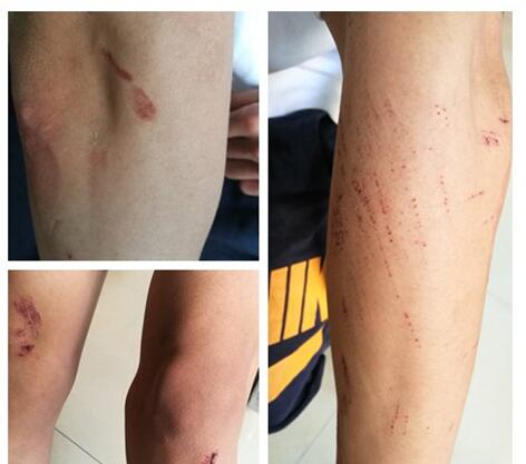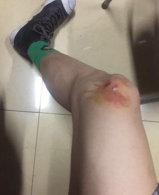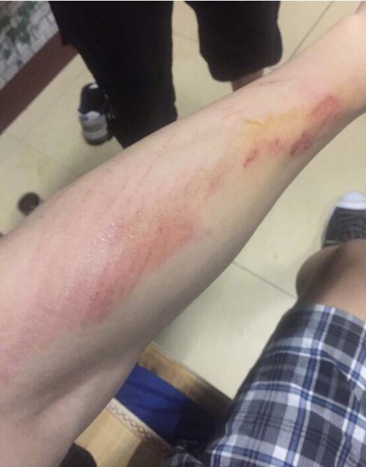 涉事情侣中的男生腿部、手臂多处擦伤/来源:大众网