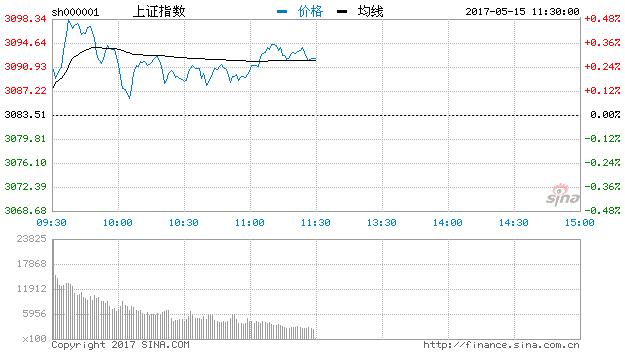 5月15日消息,周一早盤,滬深兩市小幅高開,開盤后再網絡安全板塊的帶動下,滬指高歌猛進劍指3100點,但無奈沖高動能不足,滬指逐漸回落,隨后在3100點下方震蕩整理。截至午盤,滬指報3092.28點,漲幅0.28%;深成指報9855.65點,漲幅0.69%,創業板報1783.22點,漲幅0.48%。