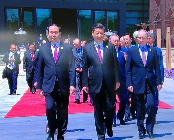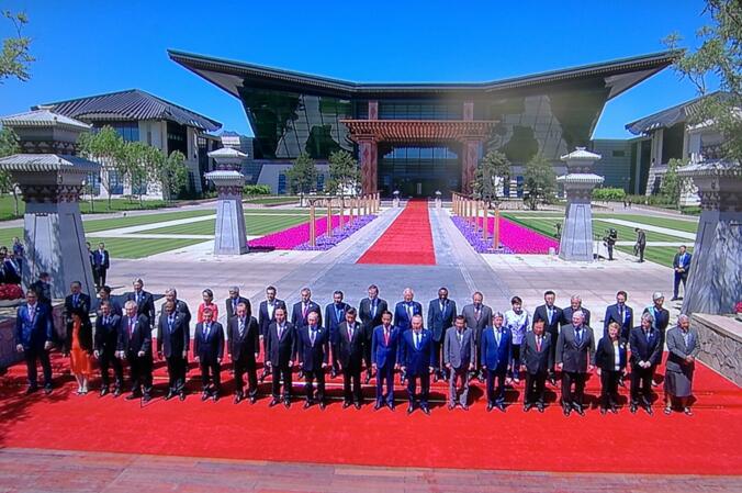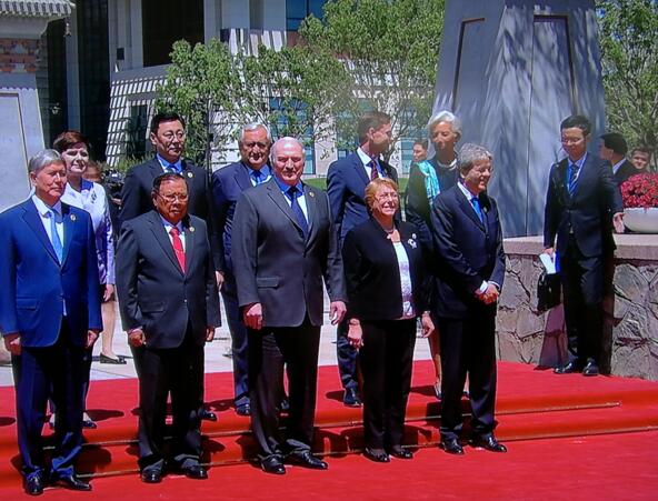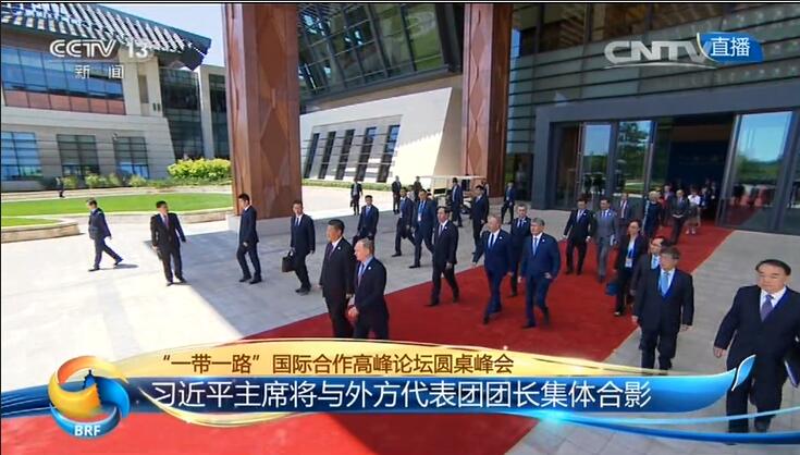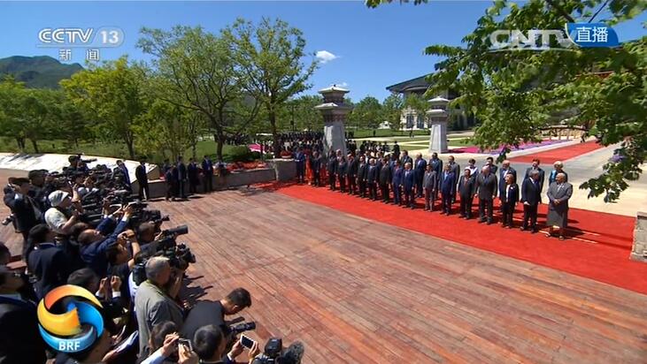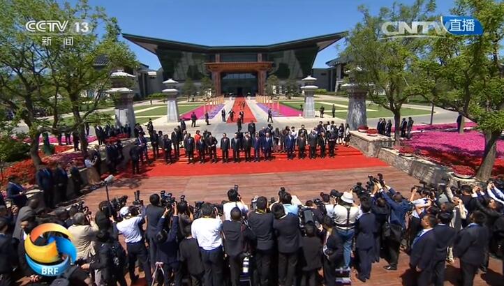 2017年5月15日,中國國家主席習近平在美麗的雁棲湖畔舉行圓桌峰會,與各國家領導人共同規劃“一帶一路”建設合作大計。在圓桌峰會第一階段會后,參會領導人在雁棲湖畔集體合影。