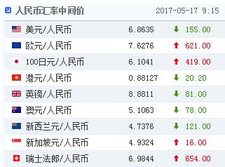 5月17日,人民幣(6.8814, -0.0028, -0.04%)兌美元中間價報6.8635,創三個月來最高,上日中間價報6.8790。上日官方收盤報6.8897,夜盤收盤報6.8880。 美元指數周二(5月16日)亞歐時段跌至98.42,創美國大選后以來新低。