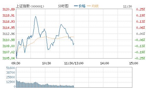 截至午間收盤,滬指跌0.1%報3109點,深成指漲0.18%報10065點。