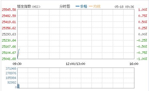 恒生指數今早低開259.44點,跌1.03%,報25034.19點;國企指數低開100.78點,跌0.97%,報10282.36點;紅籌指數低開22.99點,跌0.58%,報3954.48點。大市成交額22.38億。