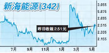 新海能源今年2月初由2.15元爆升,兩日內飆至4.20元,升幅95%後回順,由3月31日低位2.17元起步,至今出現三底,加上10日線重越20日線,反彈料可延續,以調整浪跌幅推算,黃金比率0.618倍反彈目標在3.42元!