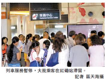 【香港商報网訊】記者區天海報道:港鐵東鐵線昨午發生嚴重故障,紅磡站附近的一段架空電纜突然發生跳掣,來往紅磡至九龍塘站服務一度暫停,一列在旺角東站附近行駛中列車更停下,逾百乘客需由港鐵職員協助離開車廂,由路軌行返車站月臺;九龍塘站亦擠滿下班乘客,港鐵需派接駁巴士接載乘客,經搶修逾4小時,至晚上7時半后東鐵線始陸續恢復正常服務。