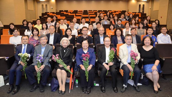 基本法委員會副主任梁愛詩(前排左三)及港區人大代表劉佩瓊(前排左四)等出席香港回歸20年論壇。 記者 崔俊良攝