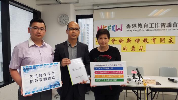 教聯會主席黃錦良表示,除新增50億元教育開支外,亦要進一步大幅提升教育經費,建議香港教育開支總額的水平應增加至本港GDP的4.8%,以足夠應付教育上遇到的各種問題。他又說,希望部分立法會議員在審批撥款時不要「拉布」,以免令50億元無法「落地」。
