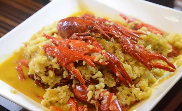 淮陽高湯蒜蓉小龍蝦,鮮蒜浸入蝦肉裏,蝦肉入味彈牙。
