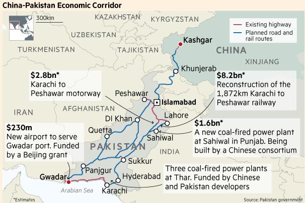 為了安撫周邊鄰國,巴基斯坦總理納瓦茲?謝里夫(Nawaz Sharif)在“一帶一路”峰會上表示:“讓我明確一點,‘中巴經濟走廊’是一個向地區所有國家開放的經濟項目。它沒有地域界限。它不應被政治化。”