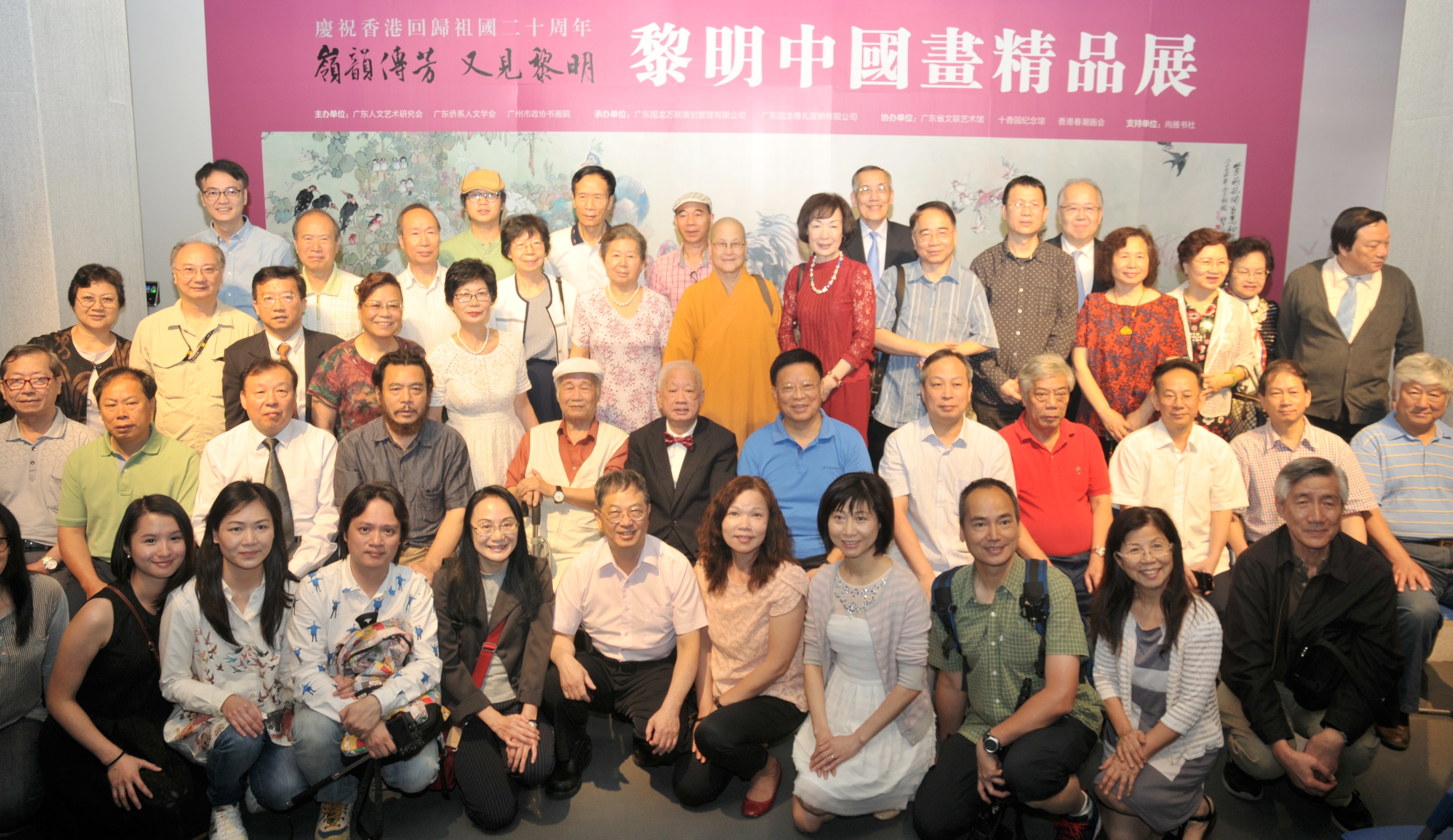 【香港商報網訊】記者曾美玲廣州報道:為慶祝香港回歸20周年,當代嶺南畫派大師黎明在廣東省文聯藝術館舉行「嶺韻傳芳又見黎明」中國畫精品展。畫展一連六日,免費向藝術愛好者開放,展期至25日。20日,黎明及其家屬、學生等一行近30人專程從香港前往廣州出席畫展開幕儀式,與來自中國內地及港澳台地區的藝術同好者歡聚一堂,熱烈交流。