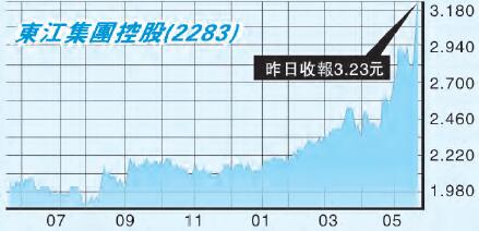 於上周二(5月16日)本欄題為《東江息高可攻可守》的文章,剛巧東江集團(2283)日前發盈喜,預計6月止六個月純利繼續較2016年同期錄得顯著增加,主要由於生產效率改善導致注塑組件制造業務的銷售收益及毛利增加。消息刺激東江股價過去兩天升近一成,過去一星期升逾14%。
