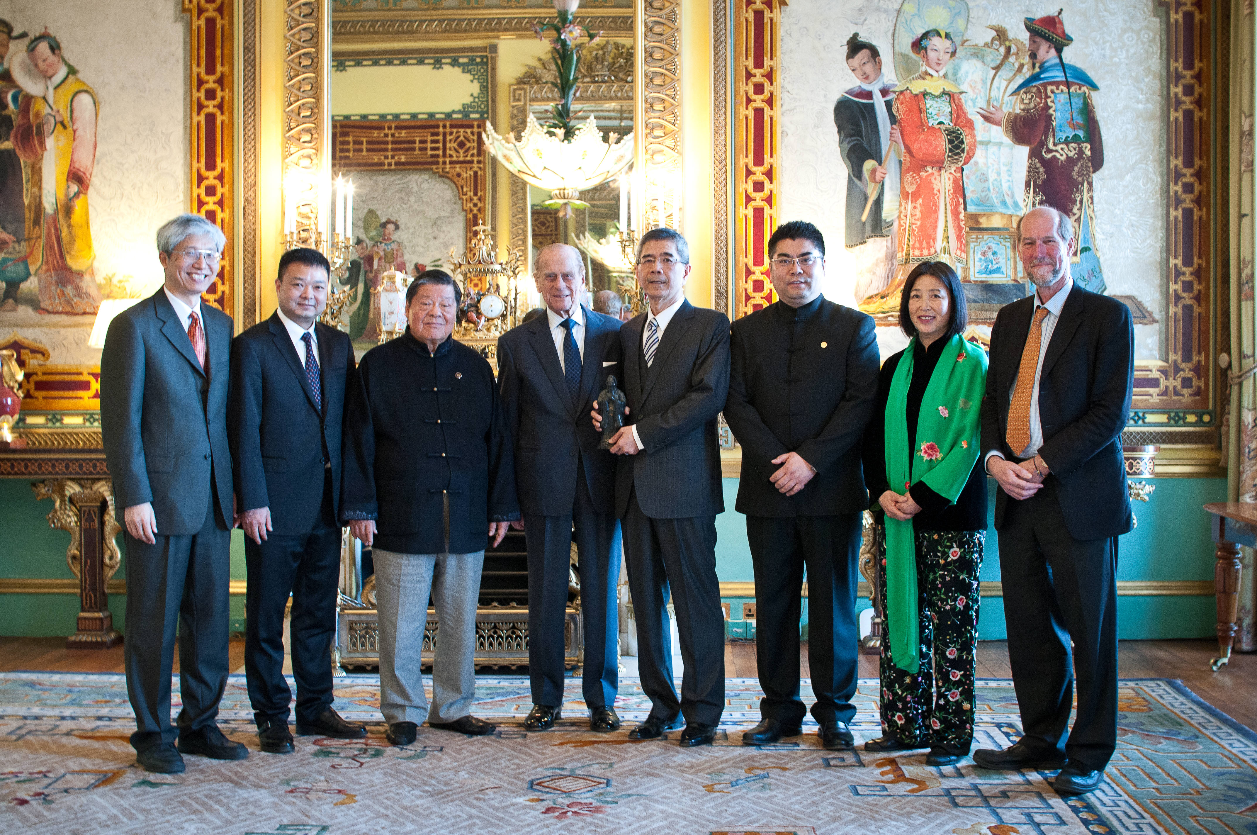 湯院長(左三)曾率領國際儒家生態聯盟到訪英國白金漢宮,獲菲利浦親王(左四)接見。