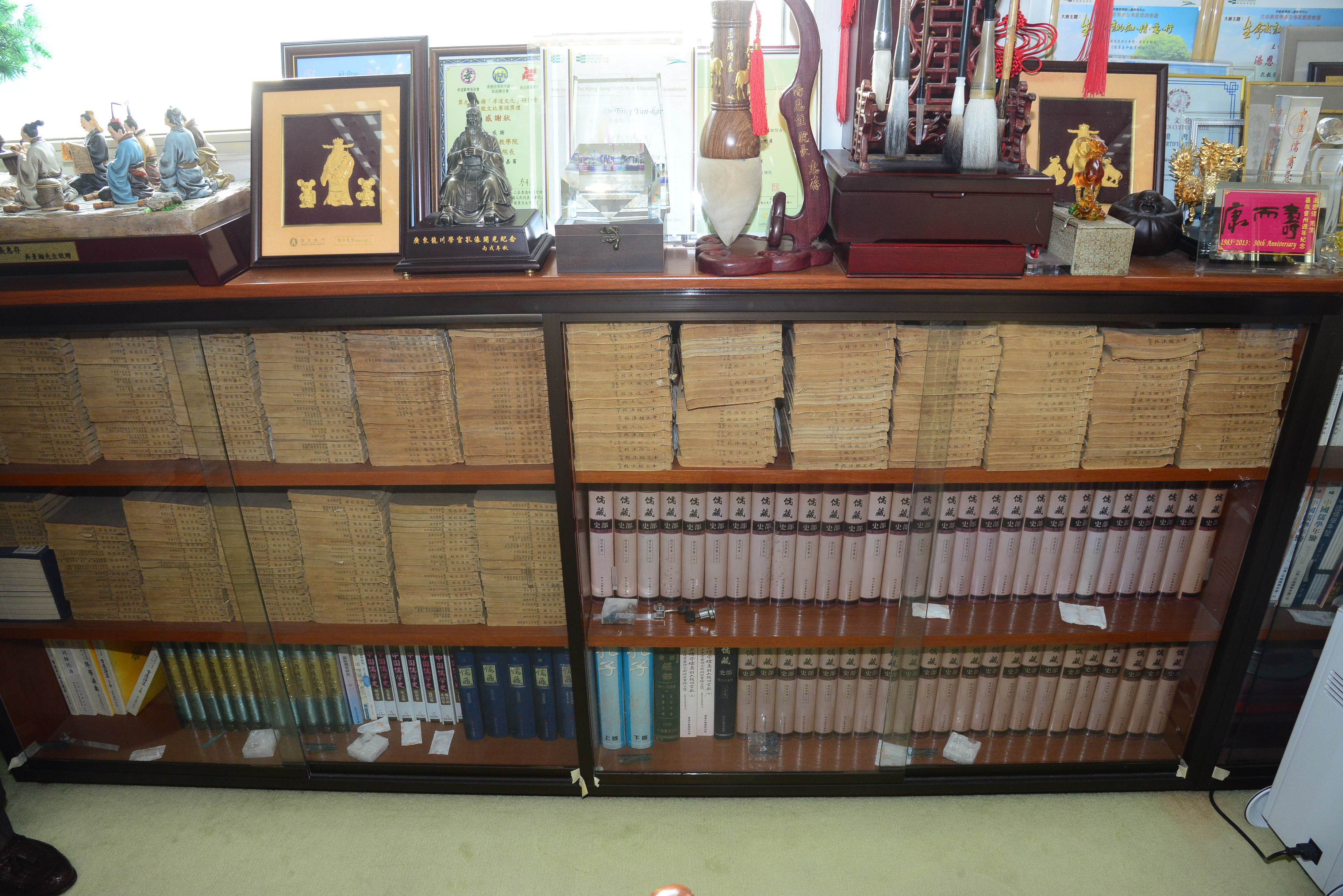 辦公室內擺滿了大量有關孔子學說的書籍和孔子像。