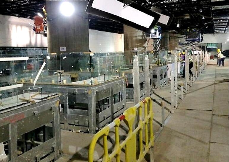 西九龙总站B3层的港海关、出入境及检疫设施位置正在安装出入境柜位。运房局文件