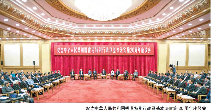在慶祝香港回歸祖國20周年之際,張德江委員長在北京紀念香港基本法實施20周年座談會上發表講話。他指出香港《基本法》的誕生和實施,是維護國家主權、實現祖國統一,從而彪炳中華民族史冊的一件大事;提出紀念《基本法》的目的是回顧「一國兩制」在香港的成功實踐,總結實施《基本法》的寶貴經驗,進一步堅定推進「一國兩制」偉大事業信心,繼續推進《基本法》的全面貫徹落實,更好地維護國家主權、安全、發展利益和香港的長期繁榮穩定。概言之,《基本法》是香港實施「一國兩制」的憲制性法律文件和靈魂,是貫徹、實現「一國兩制」的精髓。這對我們紀念回歸20周年具綱領性、启迪性、針對性引領意義,值得大家學習、體會,貫徹執行。