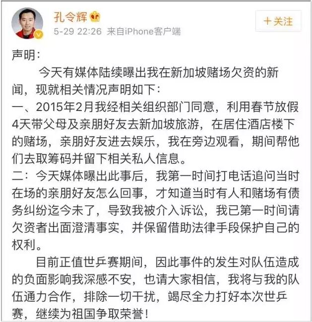 @華君summer:功過不能相抵,他曾經為國爭光我們不可否認,但這不能說明他做人是干凈的,涉嫌賭博就是犯罪,這也是國家法律和道德所不允許的,作為一個知名人士本當自律,去賭博還欠錢不還應該遭到唾棄!