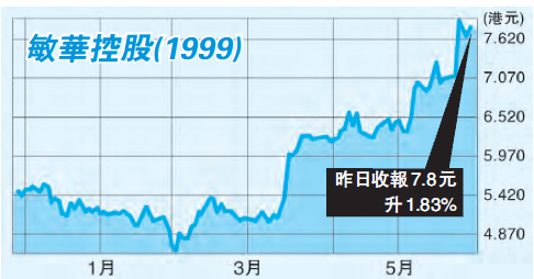 個股方面,敏華控股(1999)公布去年業績,盈利上升32.0%至17.5億元,期內營業額上升6.1%至77.8億元,毛利增長12.5%至32.5億元,整體毛利率上升2.4個百分點至41.9%,因主要原料價格下降、人民幣貶值令成本減少及內部營運效率提高所致。受惠內地民眾消費力持續提升,加上積極品牌推廣及加強門店管理,帶動中國市場收入上升37.0%至28.7億元。
