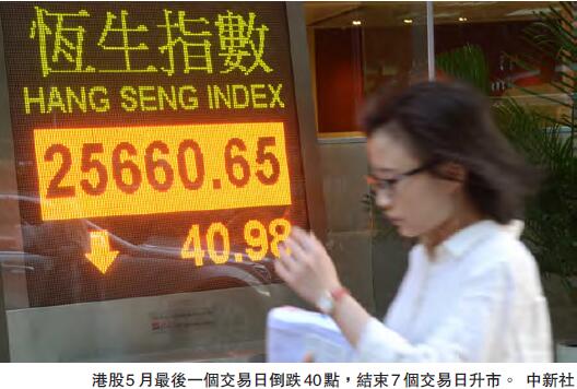 港股端午節假期後復市,早段創近23個月高位,不過後勁不繼,恒指倒跌收市,結束連升7日的走勢,昨天恒指收報25660點,下跌40點;國指收報10602點,下跌16點。大市成交額為1105億元。不過,若仔細觀察,過去一個月,大市成交仍較偏疏,反映近期港股的升勢,或是市場上的熱錢為塘水滾塘魚,在不同的板塊上輪流炒作股份。