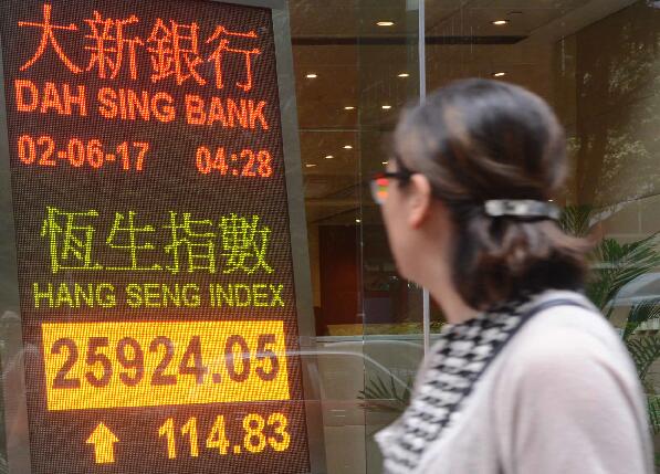 6月2日,香港恒生指數收市報25924.05點,上升114.83點,升幅為0.44%,全日成交金額852.40億元。中新社發 鄧慶樂 攝