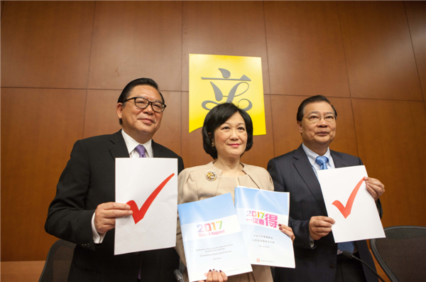 譚耀宗說,國家「十三五」規劃、「一帶一路」倡議、「粵港澳大灣區」發展規劃等均預留了香港的位置,香港決不能錯失發展的機遇。他強調,國家一直支持香港,對港方針從未發生動搖。如金融上,國家就主動幫助香港,近年推出了滬港通、深港通,香港在人民幣國際化領域都有可擔當角色。