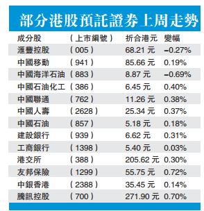 另外,ADR港股比例指數先聲奪人,升破二萬六,高見26004點,若恒指跟足ADR升勢,料開市即可突破26000點。ADR個股方面,豐控股(005)ADR折合報68.21元,跌0.27%;中國移動(941)ADR折合報85.66元,升0.19%;中海油(883)ADR折合報8.87元,跌0.69%。