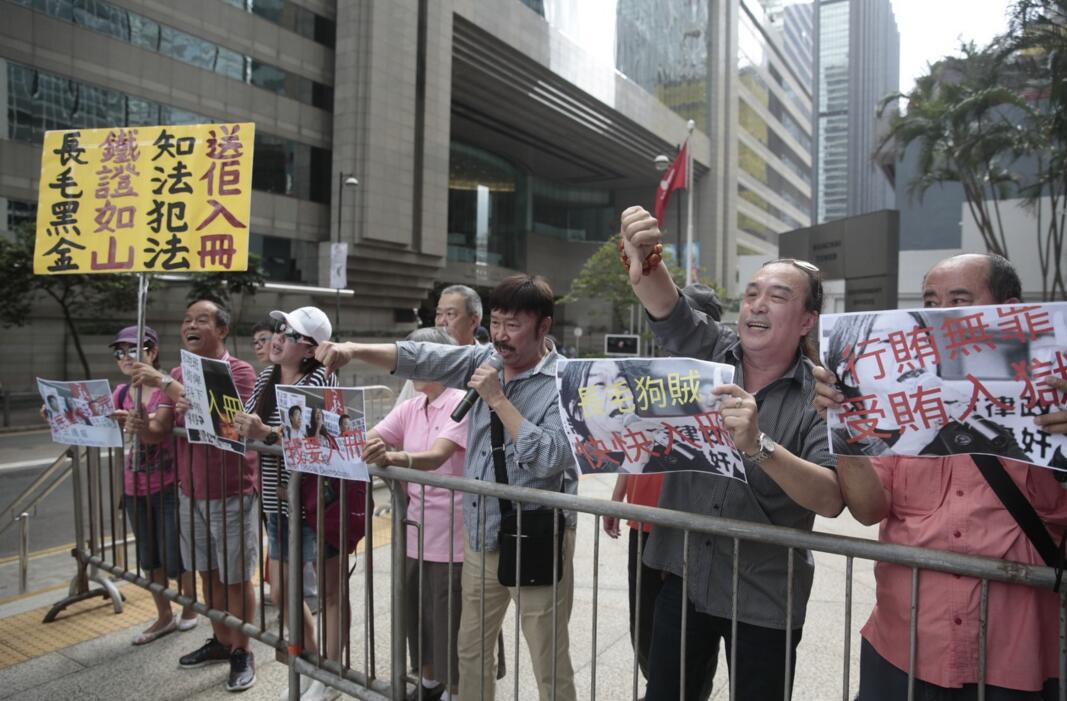開庭前,有市民到區域法院外示威,指責梁國雄涉嫌知法犯法,收受黑金,称「鐵證如山,知法犯法,送佢入冊」。