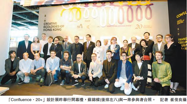 為推動香港創意生態的多元發展,香港設計中心邀請了20個來自不同範疇的設計單位,於「Confluence.20+」設計展中聚首一堂,展覽由今天起至28日於香港大會堂低座展覽廳舉行。商務及經濟發展局局長蘇錦樑昨日出席展覽開幕禮致辭時表示,展覽著重「匯聚」的概念,把家具、燈飾、服裝、首飾等不同的設計界別,集合在同一展覽,「一站式」展現香港設計界的多元。不同類型的設計作品之間互相「Crossover」,更迸發出獨特的火花,為設計師帶來跨界別的合作機遇。