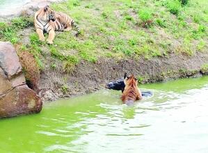 兇猛的老虎喜歡生吃小動物。但要親眼目睹這個場面,估計也是夠血腥的。昨天下午,就有網友爆料稱,“淹城動物園竟然將活生生的驢喂給老虎”。現代快報記者對此展開調查。現場游客表示,血腥場面有些受不了。常州淹城野生動物園回應稱并不是園方所為,而是公司股東做出的過激行為。