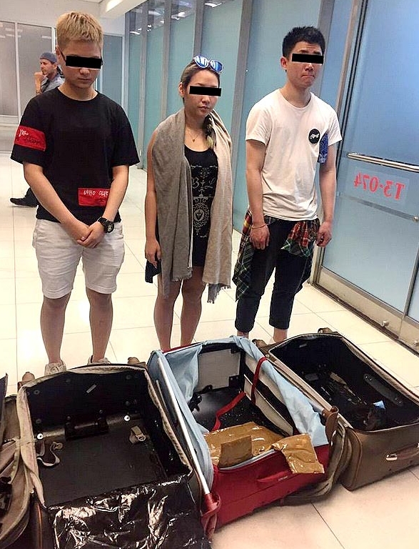 據悉,泰國肅毒委員會辦公室上周六接到本港警方的通報,稱將有香港毒販從巴西運毒入境泰國,再轉運到香港。泰國毒品調查局、海關及機場警方等各部門遂采取聯合行動,前日在曼谷素汪那普國際機場(新曼谷國際機場)守株待兔,成功拘捕3名正在辦理入境手續的香港人,分別是姓方女子(19歲)、姓董男子(22歲)及姓邱男子(24歲),全部持特區護照,執法人員在3人的行李篋暗格內,搜出該批價值港幣1100萬元的可卡因毒品。
