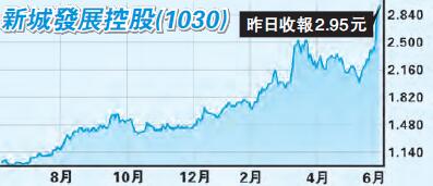 本欄於2月27日曾經推介新城發展(1030),指出集團剛剛宣布去年業績表現不錯,加上股價走勢亦配合業績表現,過去一年反覆向上,並創出歷史新高,值得留意。集團日前公布5月份銷售數據,昨天股價亦再創出歷史新高,再次吸引筆者留意。於2月27日,新城發展股價約2元,昨天收報2.95元,於短短逾三個月股價升五成;加上技術分析上,14日RSI及陰陽燭均已出現了超買信號,已持貨者不妨現在趁高套利,候低再吸。