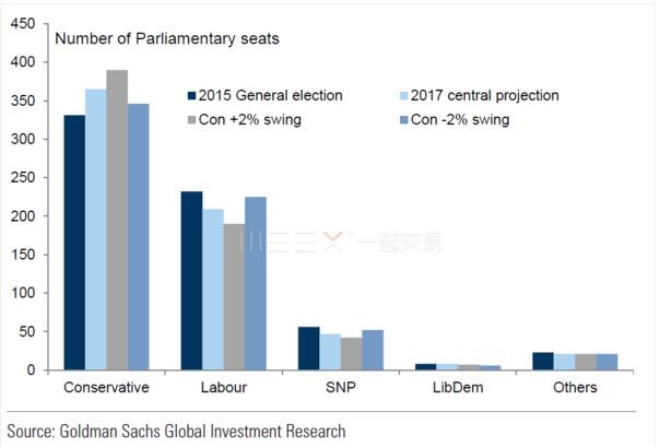 一開始特蕾莎梅開啟大選就是寄希望于大選的結果能夠讓保守黨的席位增加,因此若劇情按照高盛的劇本走,特蕾莎梅將會得償所愿。