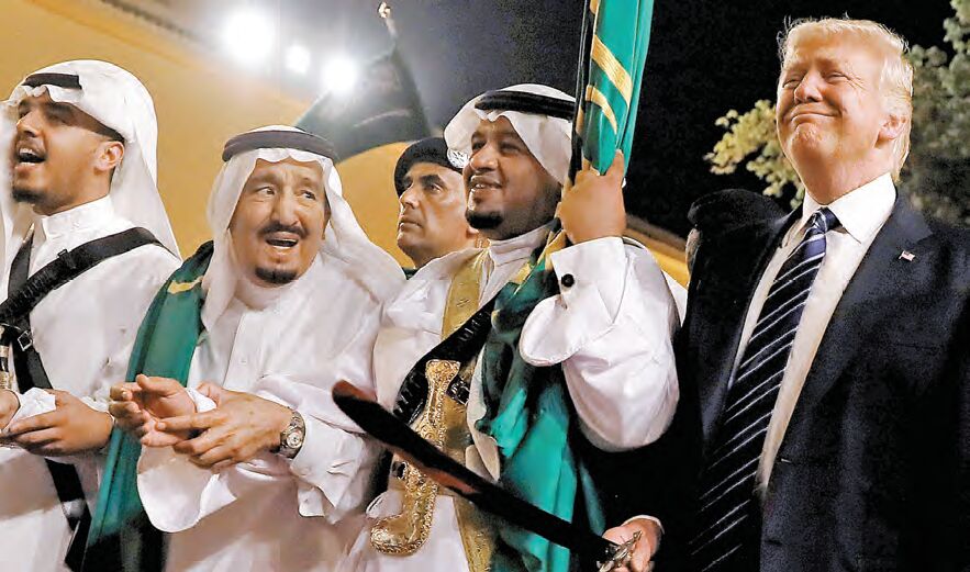 特朗普表示,需要一份反映阿拉伯国家对卡塔尔不满内容的清单,以便转达给卡国领导人,但美国政府并不一定支持这份清单的内容。图为上月特朗普访问沙特期间,获邀参与当地传统刀舞仪式。资料图片