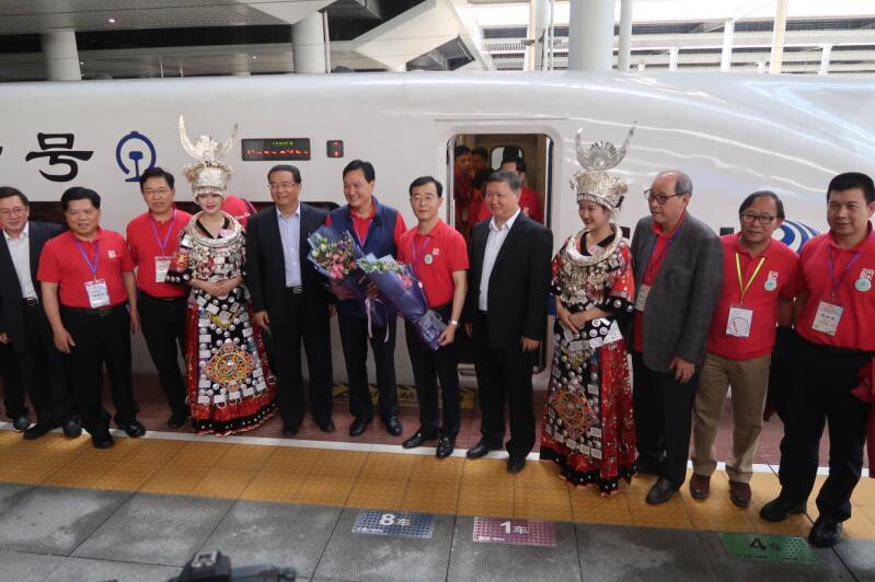 由600多位香港各界人士組成的專列團,昨晨乘坐16部大巴由香港出發,經深圳到廣州南火車站登上高鐵列車,經5個多小時抵達貴陽北站,受到貴州省委常委、統戰部部長劉曉凱在月臺熱情迎接。