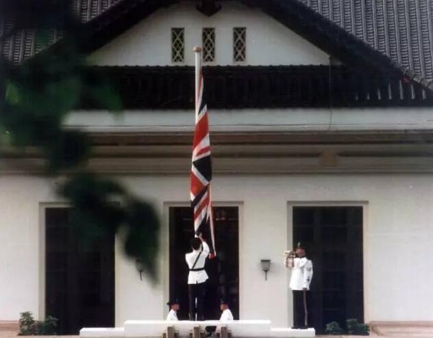 我與新華社攝影記者相臨,站在一個欄杆前,冒著小雨記錄米字旗落下,彭定康及其家屬在風笛的哀聲中,依依惜別府院的情景。“下午4時15分,此時下著不大不小的雨,彭定康沒有大傘,低著頭一股勁兒走上告別台,用目光掃視了站在人群中的妻子和三個女兒,很快將雙手背後,眉頭緊鎖,緊咬著嘴唇,看樣子在強制自己內心的感情。”媒體的描述彌補了我視力的不足,畢竟我的長焦無法看太清二百米開外的細節。