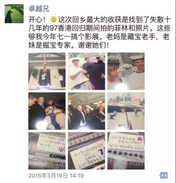 我後來又說,與攝影大師孫成毅商量過,明年香港回歸二十年,把這些照片整理出來,搞個攝影展。太激動了,其實2015年的“明年”是2016年,香港回歸二十年是2017年的事。