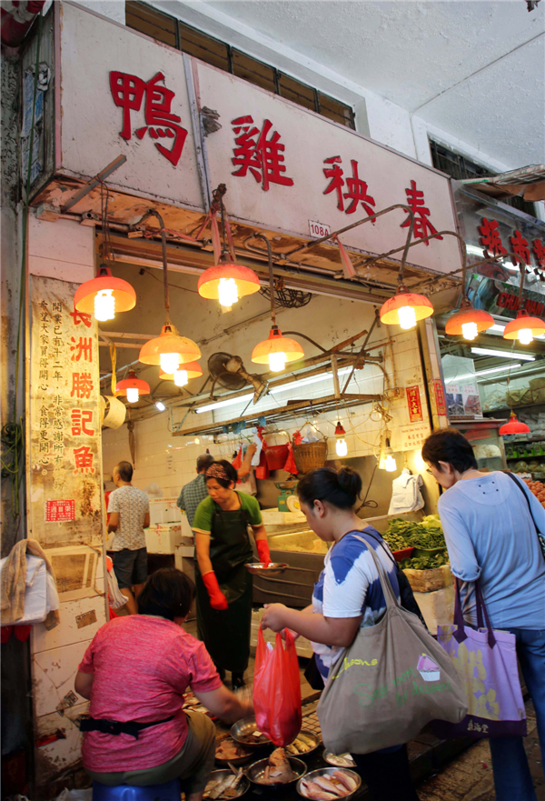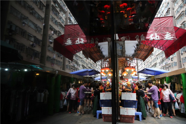 近年被旅发局推介成香港旅游景点之一的百年春秧街,吸引不少内地及世界各地游客观光。中新社发 洪少葵 摄