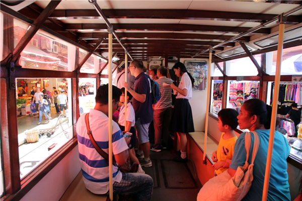 游览春秧街的一个特色是乘坐电车逛春秧街街市,在熙熙攘攘的叫卖声中,有如身临其境。每当电车驶入狭窄春秧街时,电车司机必须不断响着“叮叮”提醒行人闪避,在人潮中缓缓前进。