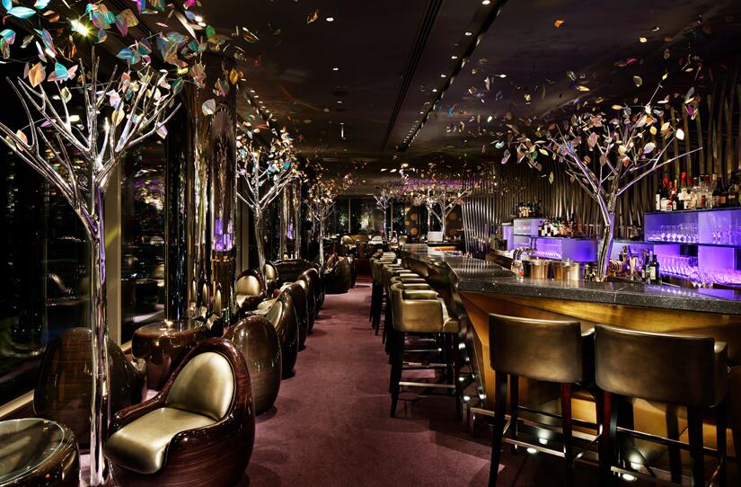 酒吧的紫色調裝修讓人迷醉。