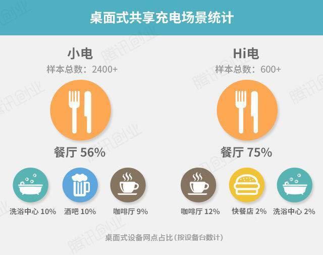 ·桌面式充电宝的网点分布超过一半都在餐厅,Hi电甚至高达四分之三。