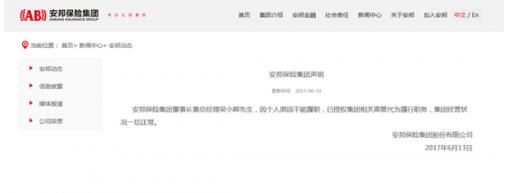 安邦保險集團聲明:吳小暉因個人原因不能履職