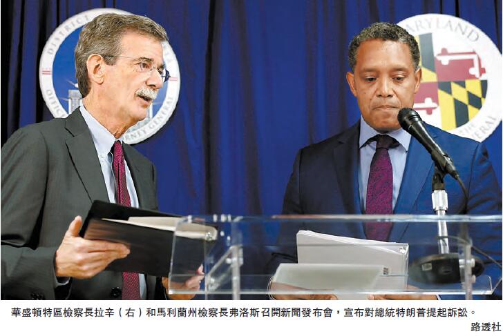 【香港商報网訊】美國首都華盛頓特區和相鄰馬利蘭州的檢察長,當地時間周一聯名針對美國總統特朗普提起訴訟,控告他作為總統違反美國憲法中的「薪酬條款」,并尋求通過法院立案審理迫使特朗普公開納稅申報表。白宮當即指責這一訴訟具有黨派政治動機。這是美國首次由政府實體發起針對特朗普的訴訟。