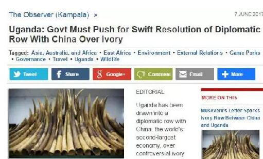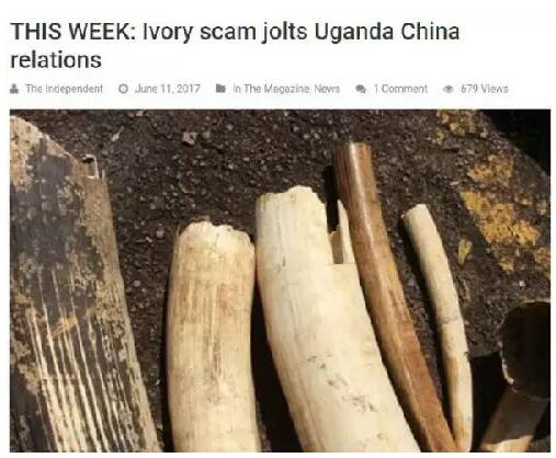 ▲烏干達《獨立報》稱,象牙走私丑聞波及中國和烏干達關系。