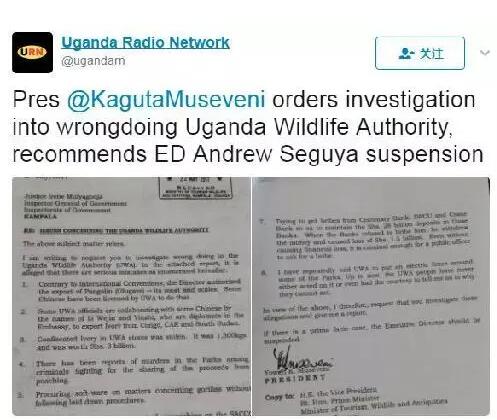 不過《觀察者報》稱,據內部消息人士透露,提供這一錯誤信息的是烏干達旅游署的資深官員,他們一直與烏干達野生動物管理局心懷芥蒂,兩個部門之間因為財務問題長期不和。旅游署官員還動用了親戚和熟人關系來讓穆塞韋尼總統在信上簽名,但不料,這引發了一場外交風波,差點破壞了烏干達與中國的外交關系。