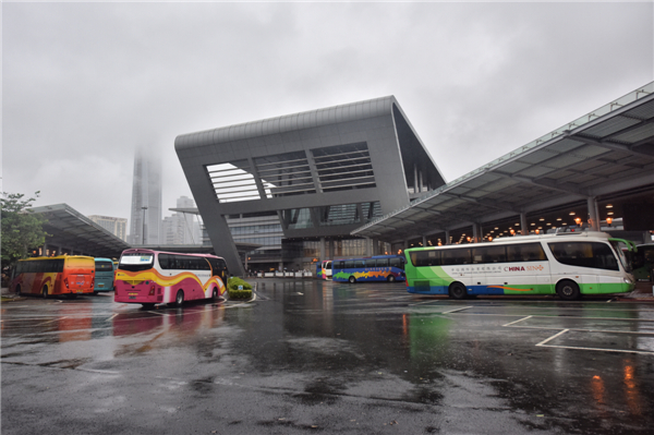 6月13日,几辆粤港跨境巴士停靠在深圳湾口岸港方口岸区。新华社