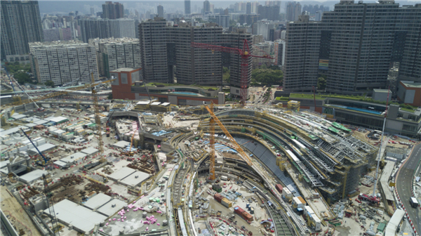 建设中的广深港高速铁路香港西九龙总站施工工地(5月17日摄)。