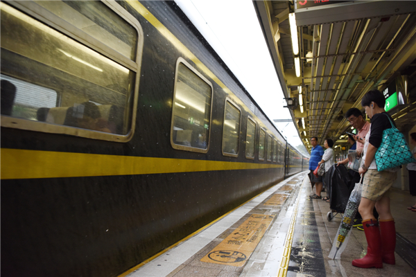 6月13日,在香港九龙塘车站,一列广九直通车经过站台。